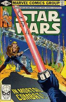 Luke and Leia accidentally make a hyperspace jump outside the galaxy. In “Star Trek”-ian fashion, they’re brought aboard a sentient ship. Luke and Leia’s affection for each other reminds the ship of the meaning of love, and it decides to let them go and kill a few pesky Imperials, to boot. The concepts of extragalactic beings (see the Yuuzhan Vong) and sentient ships (see “Lost Tribe of the Sith”) would later be revisited, but back in May 1980, this was a daring, bizarre story that pushed the boundaries of what stories could be told in this universe. Quite possibly, it only exists because Marvel needed a filler issue at the last minute.