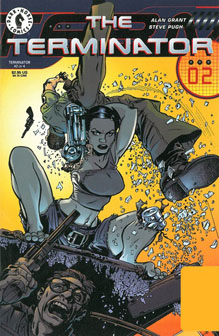 While Guy Davis’ art on Issue 0 is weak – the naked Terminators look like peach-colored blobs – Steve Pugh follows with entertaining images of increasingly banged-up Terminators in Issues 1-4. Pugh draws the cyborgs’ grim, determined faces particularly well.