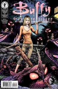 Up next is another winner, Chris Boal’s “The Heart of a Slayer, Parts 1 and 2“ (26-27), which is set after “Hush” (4.10) – as Riley (making his comic debut) and Buffy know about each other’s roles – but apparently before “A New Man” (4.12), when Buffy begins to work directly with Riley and The Initiative. Boal nicely taps into Buffy’s inability to balance secret trysts with Riley with hangout time with Willow and Xander during this period. He also debuts Buffy’s four-barreled stake-gun (perhaps courtesy of Riley), which can fire stakes like bullets.