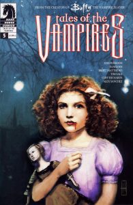 Often when a comic book series ends, that final issue will sit in its slot on the racks for a long time afterward, since there is no next issue to replace it. My enduring memory of “Tales of the Vampires” (December 2003-April 2004) is seeing Issue 5 on the rack for a year or so. It was the last issue of Dark Horse’s original “Buffy” run, leaving a three-year gap before Season 8 began in 2007. (It wasn’t a total dark age: There were “Buffy” novels throughout this time, and IDW’s “Angel” comics started in 2005.)