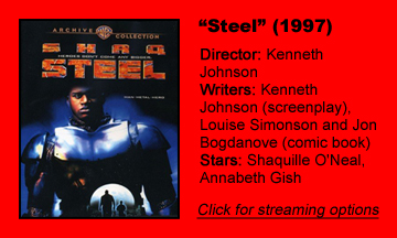 “Steel” (1997) is so boring, dumb and uninspired that it’s hard to imagine it was any fun to make the movie; it’s certainly no fun to watch. The NBA’s Shaquille O’Neal had already headlined a film as “Kazaam,” and we know today about his natural charms from hoops analyst gigs and commercials, but at this point he is stiff on screen.