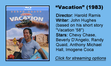 “National Lampoon’s Vacation” (1983) both makes fun of and lauds the archetypal dad who wants to show his family a fun time but runs into a building stream of annoyances and gradually loses his mind. Writer John Hughes shows love and sympathy for this type of person, and has the perfect actor to embody Clark Griswold in Chevy Chase.