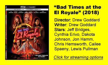 Having proven himself in the Joss Whedon school (“Buffy,” “Angel”) and with crowd-pleasers (“The Martian”), writer-director Drew Goddard tries his hand at a Quentin Tarantino-style epic in “Bad Times at the El Royale” (2018).