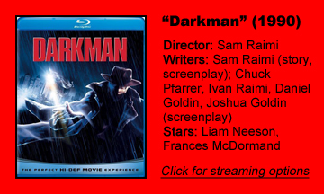 “Darkman” isn’t deadly serious, but nor is it campy; it’s in that middle ground that’s perfect for “Spider-Man” but arguably not ideal here, in what should be a moodier film.