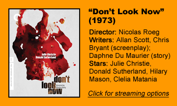 “Don’t Look Now” makes choices that are at first blush tonally wrong, but because it’s a purposefully weird film, this encourages a viewer to seek meaning. It includes a long, explicit (for a mainstream film) sex scene that can’t be fast-forwarded through because it intersperses shots of John and Laura preparing for their next day.
