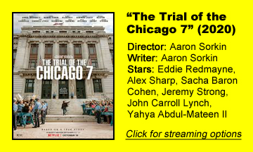 If you want to enjoy that moment, don’t look up the actual transcripts. But even if Sorkin fibs a little, “The Trial of the Chicago 7” is an engrossing history lesson with enough lighter and cinematic moments to not be a lecture.