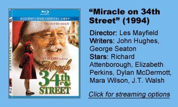 Directed by Les Mayfield and based on the 1947 film written by George Seaton, this “Miracle” is ideally suited for kids on the borderline between belief and nonbelief in Santa Claus.