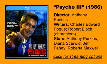 We all go a little mad sometimes, so from Nov. 27-Dec. 11 we’re dragging the swamp behind the Bates Motel for insight into the films of the “Psycho” franchise. Next up is “Psycho III” (1986):