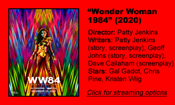 “Wonder Woman 1984” has automatic goodwill by being released straight into our homes for free (if we already have HBO Max), and director/co-writer Patty Jenkins cashes in a lot of it in the early going. We like Diana/Wonder Woman because she’s so perfectly played by Gal Gadot, and Chris Pine’s Steve Trevor has great chemistry with our heroine, and Kristen Wiig makes a decent Barbara/Cheetah.