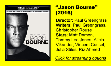 The “Bourne” trilogy (2002-07) had kept answers and characterization at arm’s length on purpose; most strikingly to my mind, Julia Stiles is in a top-billed role as a Treadstone tech agent but doesn’t have much to do.