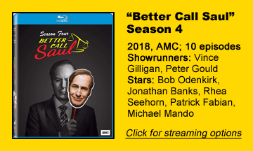 A slight ding against Season 4 is that Jimmy is so darn likable that I find it hard to believe he’ll become a bad guy – even though I know he does. A midseason episode weirdly sneaks in a flash-forward to Saul and receptionist Francesca (Tina Lindy) frantically shredding papers and clearing out Saul’s office.