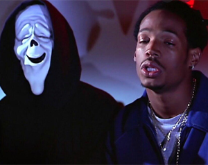 Ghostface hits the bong with Shorty (Marlon Wayans) and his stoner buds, and the mask designers do a great job making him look increasingly stoned.
