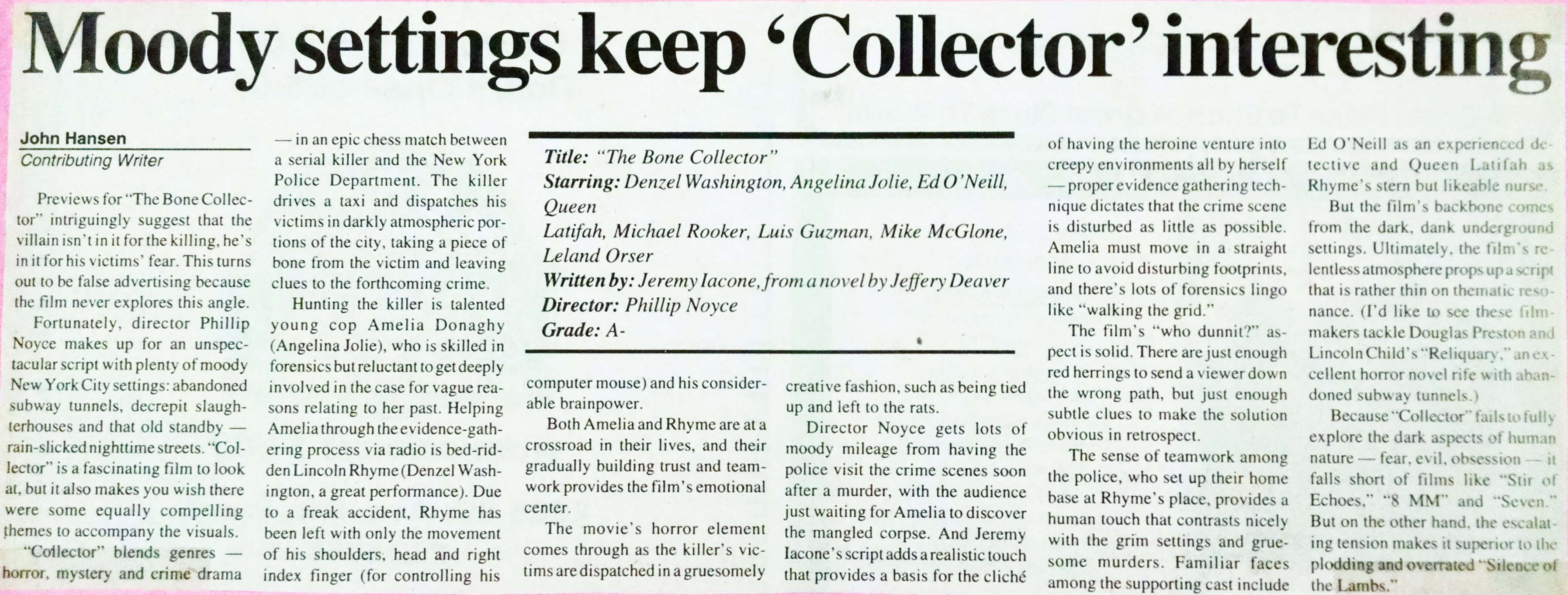 My “Bone Collector” review, NDSU Spectrum, November 1999