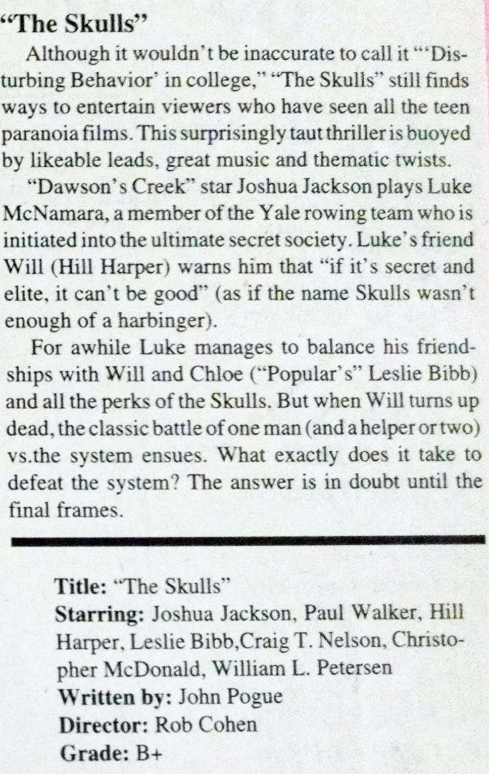 My “Skulls” review, NDSU Spectrum, April 2000